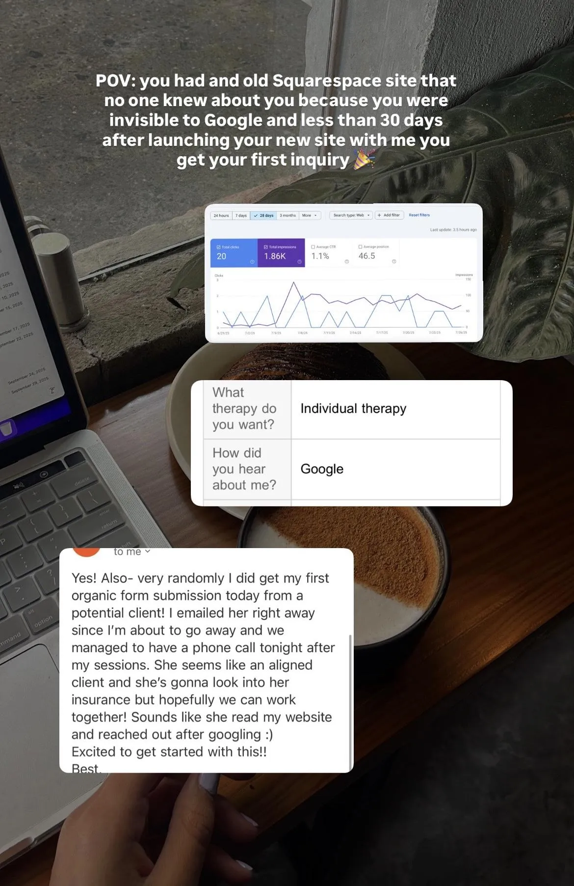I’ve worked with over 100 clients and students, guiding them to build websites and SEO systems that actually perform, from launches where practices start getting organic inquiries in weeks, to traffic growth measured in thousands of high-intent visitors each month.